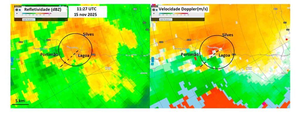 Das Unwettertief „Cláudia“ hat in der Algarve zwei bestätigte extreme Windereignisse ausgelöst: Während sich über Albufeira ein Tornado der Stärke IF2 bildete, zog über Lagoa ein schweres Windphänomen hinweg. Das gab das Portugiesische Institut für Meer und Atmosphäre (IPMA) nach Auswertung von Radardaten und Schadensanalysen bekannt.